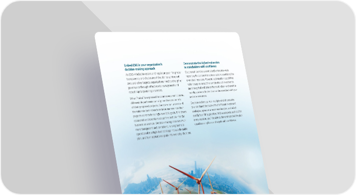 Embed ESG in your organization’s Demonstrate the highest-value plan decision-making approach to stakeholders with confidence As ESG-minded investors and regulators push for greater Copperleaf provides a centralized, enterprise-wide transparency and disclosure of the plan to achieve net repository to capture the various options considered for zero and other targets, organizations need to strengthen every business case. Powerful optimization capabilities governance through effective risk management and make it easy to select the combination of investments robust capital planning processes. and timing that will deliver the most value—and create a When “value” is expressed in common economic terms, realistic, deliverable plan that can be executed with your different departments can align on the cost-benefit available resources. of their proposed projects. Everyone can understand Decision makers can run multiple what-if scenarios the rationale behind each decision and see how their to understand the trade-offs of different investment projects contribute to high-level ESG goals. This drives strategies, agree on a recommended plan, and adapt collaborative discussions about the best plan for the quickly to shifting priorities. With a complete audit trail for business as a whole. Decision making becomes much every decision, you’ll be able to demonstrate that the plan more transparent and consistent, rallying teams to considers all options and targets with confidence. operationalize a high-level strategy into a deliverable plan, and turn aspirational goals into everyday decisions.