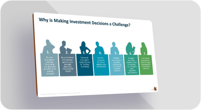 Why is Making Investment Decisions a Challenge? 1. 2. 3. 4. 5. 6. 7. No way No quantitative Too much Intuition, Inability Struggle Inconsistent to properly link between time spent advocacy to compare to quickly processes to evaluate spending and entering data & internal dissimilar respond to the make the right financial & strategic & “number politics drive investments unexpected investment or non-financial objectives, crunching” prioritization and defend e.g. emergent sustainment benefits when including ESG portfolio work, decisions making targets decisions regulatory decisions requirements Copperleaf Technologies Inc. © 2022 Proprietary & Confidential I 5